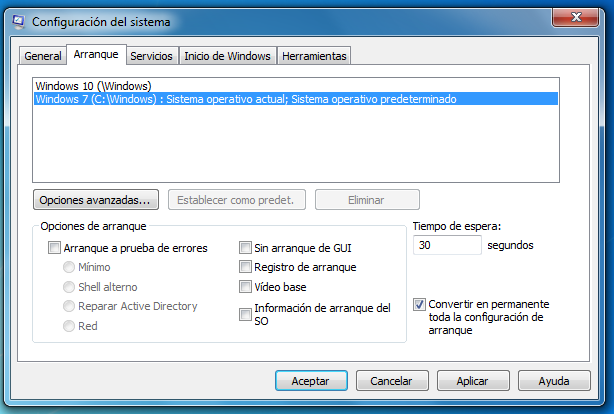 3. Activa la casilla «Convertir en permanente toda la configuración de arranque».