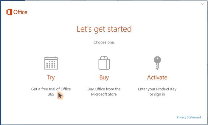 En el caso específico de pasar de la versión de prueba (trial) de Office 360 que de seguro te dejaron instalada en tu lap nueva, a una versión Office 2016, probablemente te aparezca repetidamente una venta que da 3 opciones.. Probablemente tu office ya se encuentra activado, pero sigue solicitando su activación.