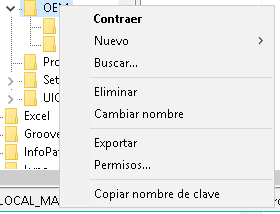 6. Repite la acción con la clave de registro HKEY_LOCAL_MACHINE\SOFTWARE\Microsoft\Office\16.0\Common\OEM