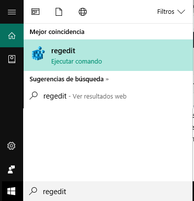 - Escribe regedit. Selecciona el comando o da <<enter>>